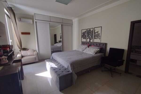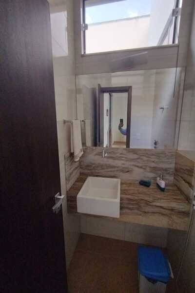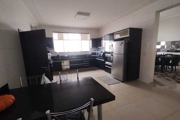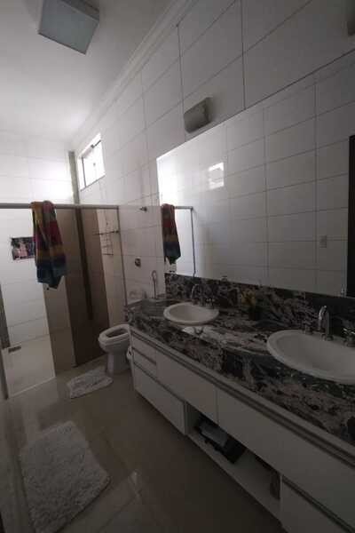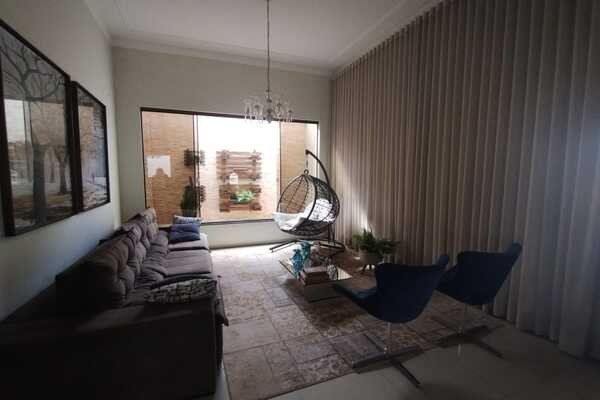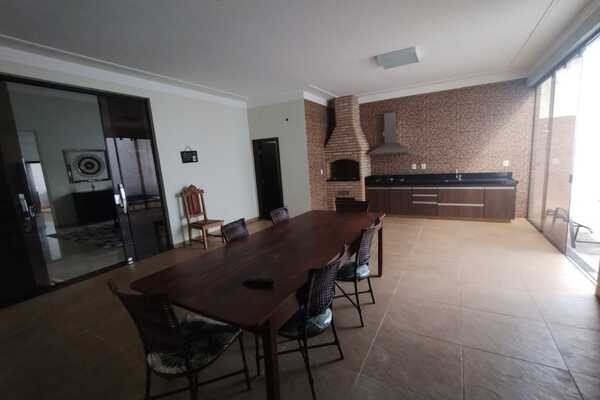 Sala ampla com dois ambientes, cozinha com armários e cooktop, coifa, 3 quartos sendo todos suítes e ar condicionado e um deles com banheira de hidromassagem, banheiro social, área gourmet completa, banheiro de serviço, piscina com hidromassagem, cômodo no fundo, área de serviço com armários, despensa com armários, garagem para 3 carros, laje e piso de porcelanato, sendo 17mx26,35m.
