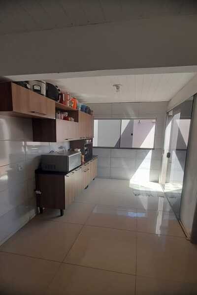 3 Quartos sendo uma suíte com banheira, banheiro social, cozinha, sala, área de lazer, garagem para 2 carros, garagem para 2 carros, piso cerâmica e porcelanato, forrada com pvc, portão eletrônico, interfone, quintal todo cimentado, todos os muros de alvenaria